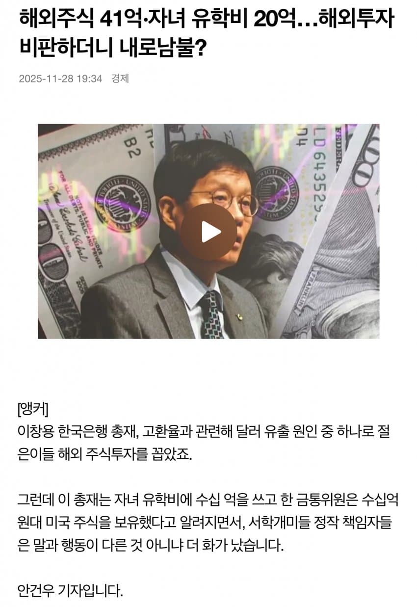 그와중에 장용성 금통위원은 해외주식 보유액 41.7억