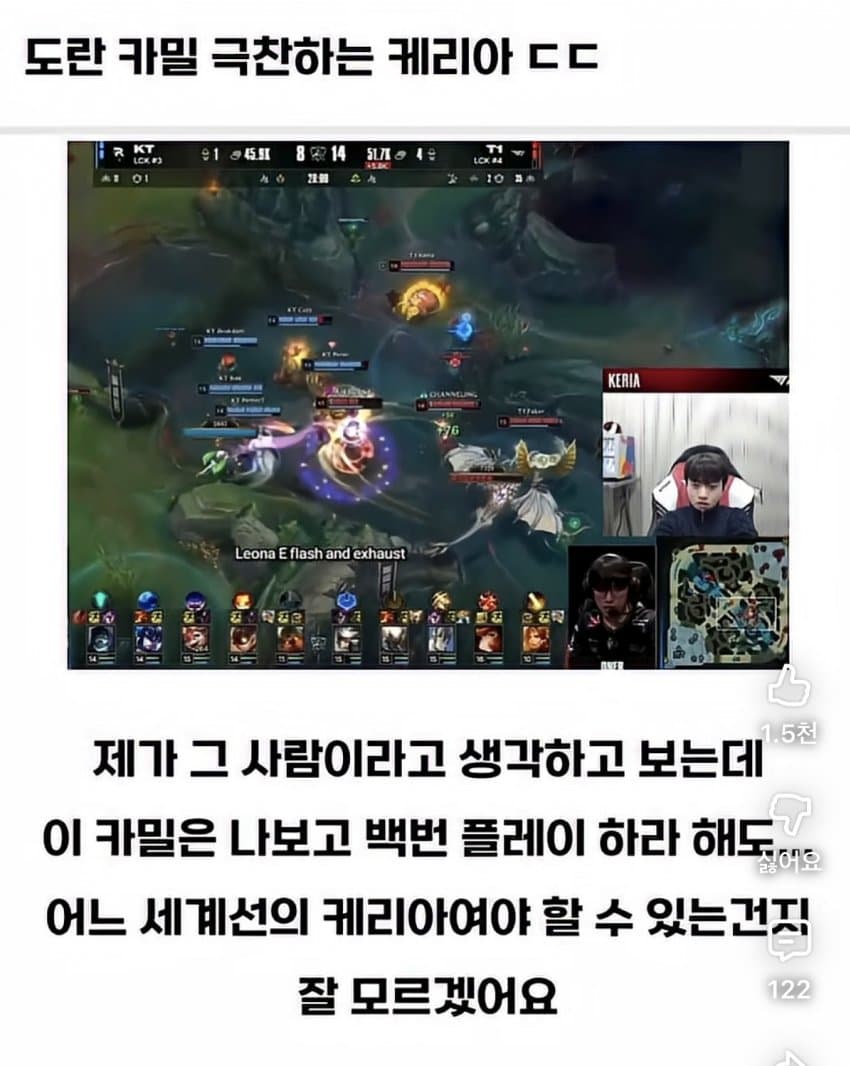 구마유시 오너 케리아 : 도란 카밀 ㅈㄴ 잘해줬다