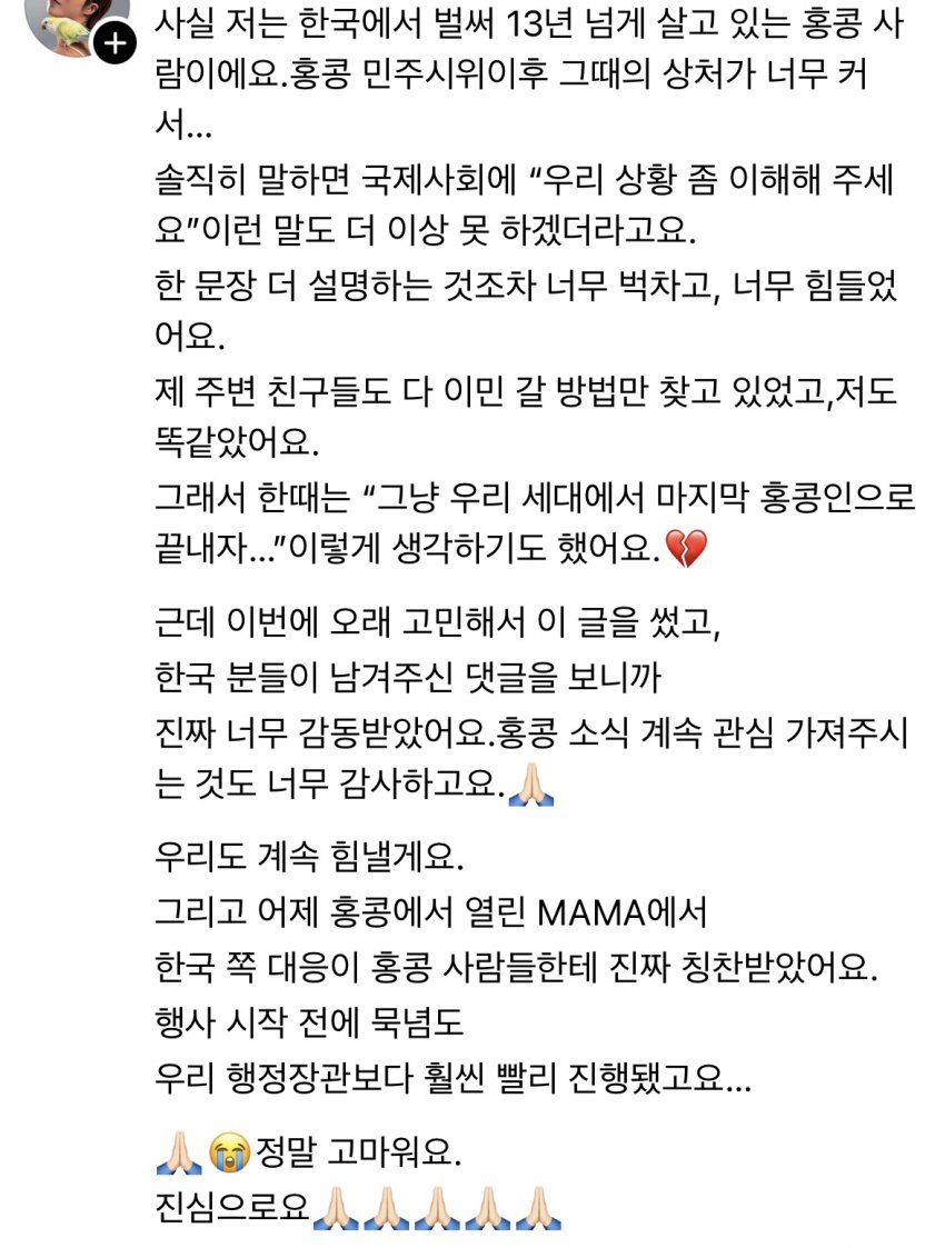 홍콩이 아니고 중국임이건 확실히 집고 넘어가야함중국에서 홍콩이 어쩌고 대만이 어쩌고 하면 절대 안되는 실 수를 하는 것임굳이 지칭하려면 중국의 홍콩 지역, 중국의 대만 지역 이런식으로 발언해야한다