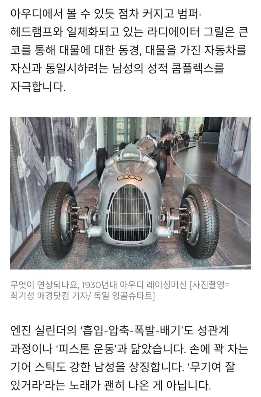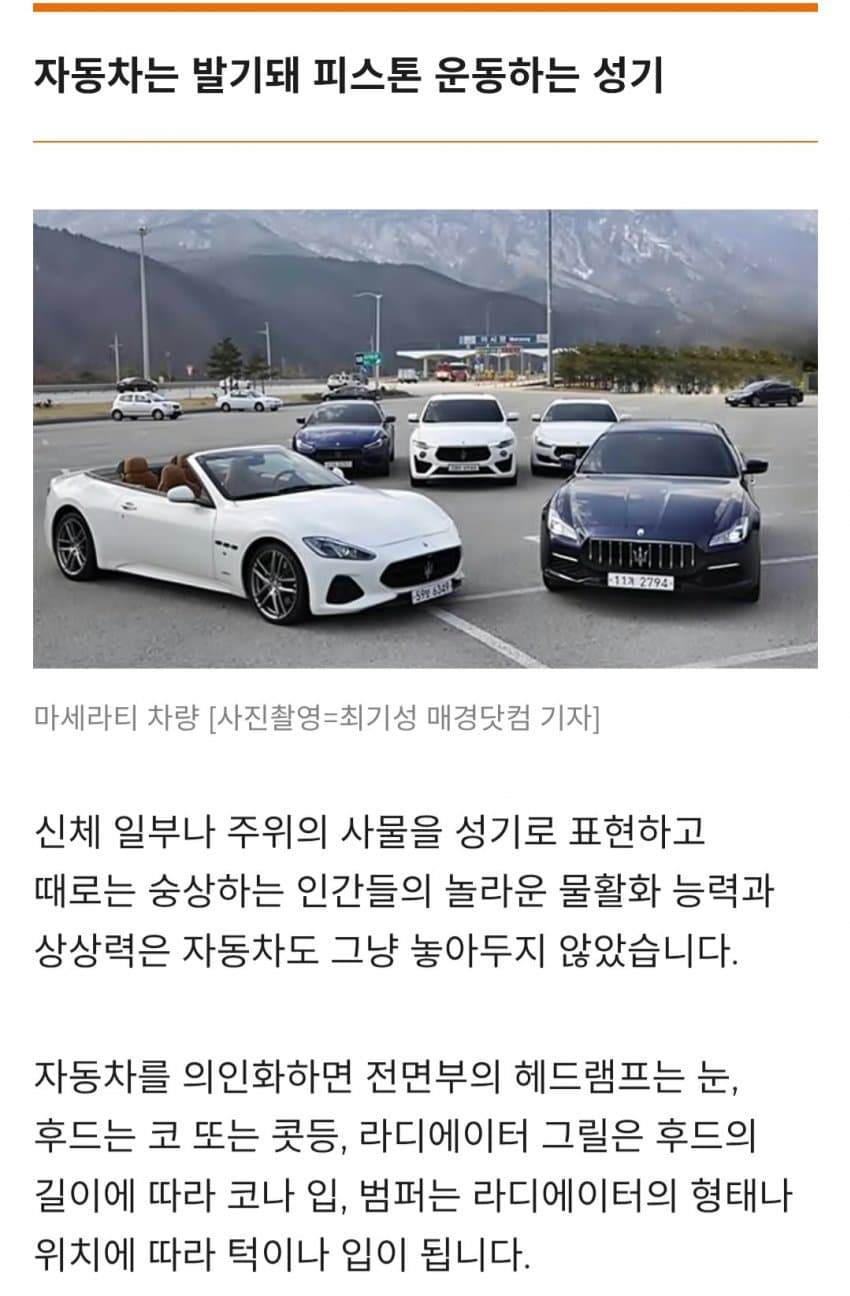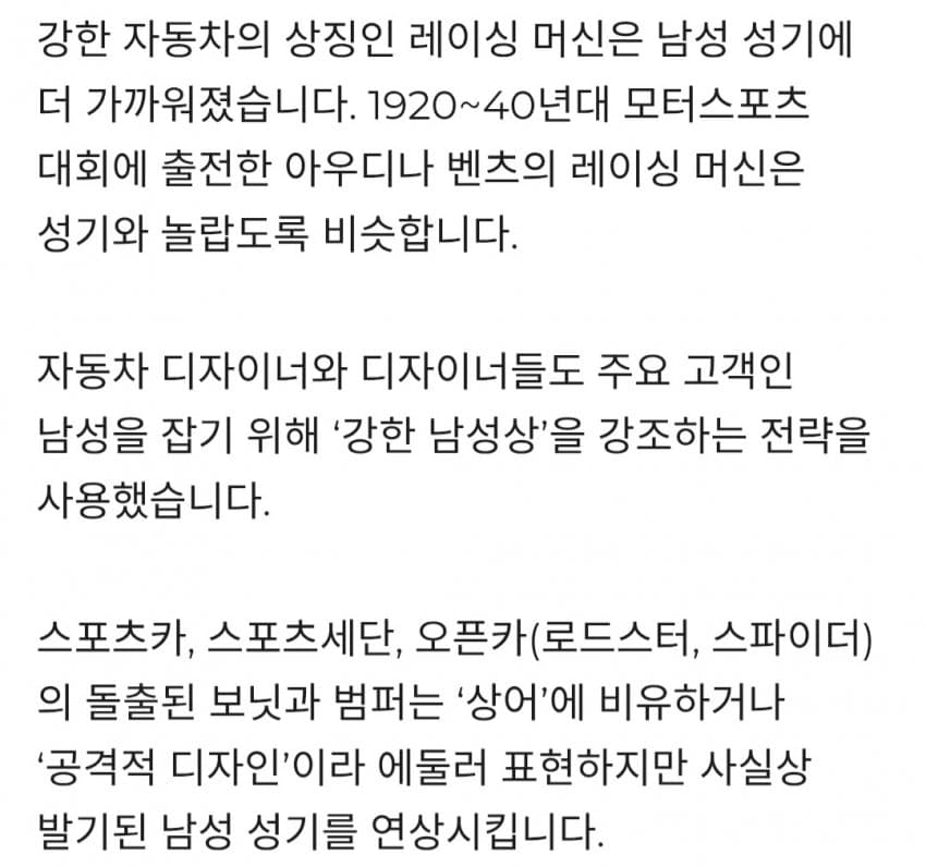 오히려 자동차의 유선형 쉐입이 여체와 비슷해서 외국에선 자기 애마를 she, her이라고 부르는 경우가 많은데.