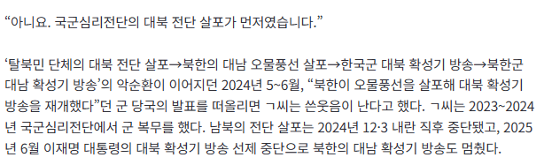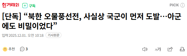 팩트는 북한 원점타격 계엄 소리 나오니까 화들짝 놀라서 그동안 열심히 날리던 오물풍선 안 날리고 개쫄아있었다는거