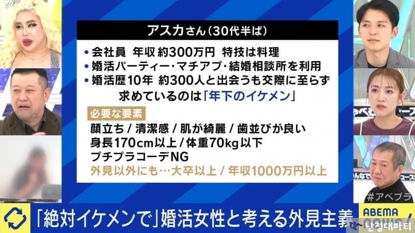 그외에도 대졸 이상에 연수입 1000만엔 이상은 절대 조건
