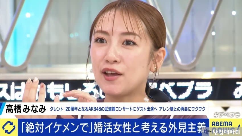 이런 아스카를 보며 결혼 선배라고 할 수 있는 전직 아이돌 출신 탈렌트 타카하시 미나미는 조건이 너무 엄격한 거 아니냐고 지적함