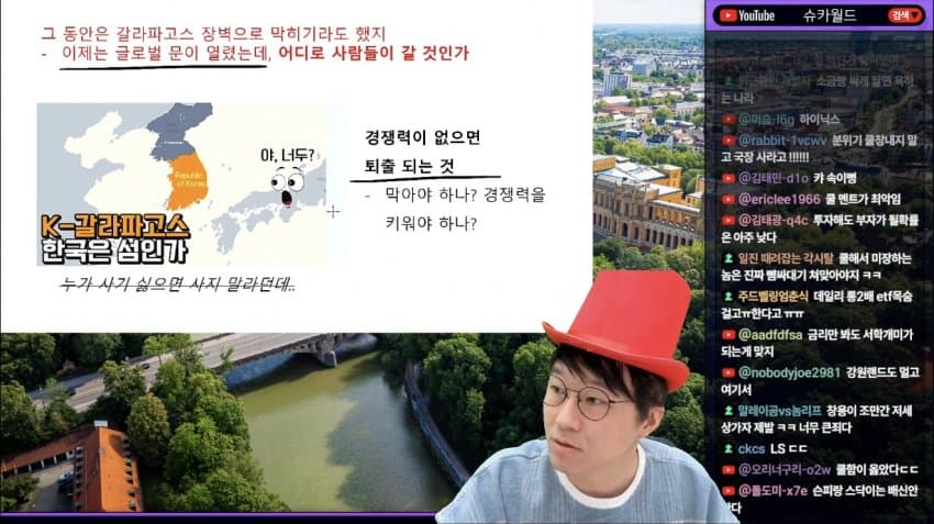 슈카월드 좀 안타까운 지점이 생긴 게자기딴애는 저런 방송하고 욕먹으니까 되려 중립을 지키고 있다고 생각할 거임근데 지금 정치권에서 벌어지는 일을 들여다본 사람이면 정치성향 상관없이 찢주당 지지하기가 쉽지 않음거기다 가장 핵심인 경제에서는 뭐 의무교육만 받았어도 두려움과 공포가 엄습할 거임어린세대는 국민연금 건강보험재정 이런 낡은 사회보장제도가 자기 것이 아니라는 것도 알거고이런 상황에 대한민국의 중심이 이미 기울어져서 중심에 위치해있지 않은데 양쪽 눈치보면서 중심에 있다고 착각하는 게.