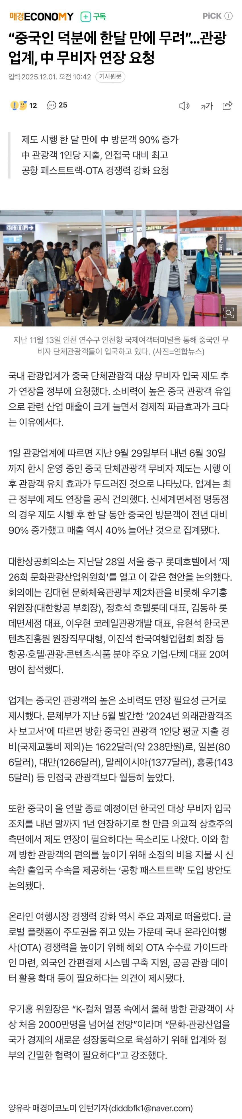 “중국인 덕분에 한달 만에 무려”…관광업계, 中 무비자 연장 요청