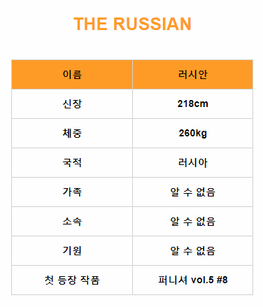 마블 코믹스의 퍼니셔에게 러시안이라는 빌런이 있음