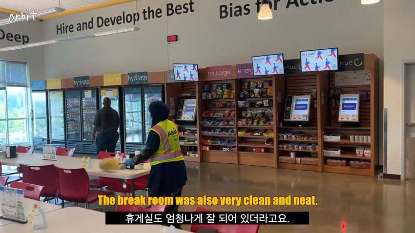 아마존 1시간 45분근무 했으면 15분 휴식 보장.장지쿠팡 50분 식사시간 20분 휴식시간.......그외 나머지 시간은 업무8시간 내내 서있기 때문에 족막염 관절염 걸리기 쉽다.그리고 남자는 워터 , 쟈키, 카트운반 시키는데 진짜 빡시다