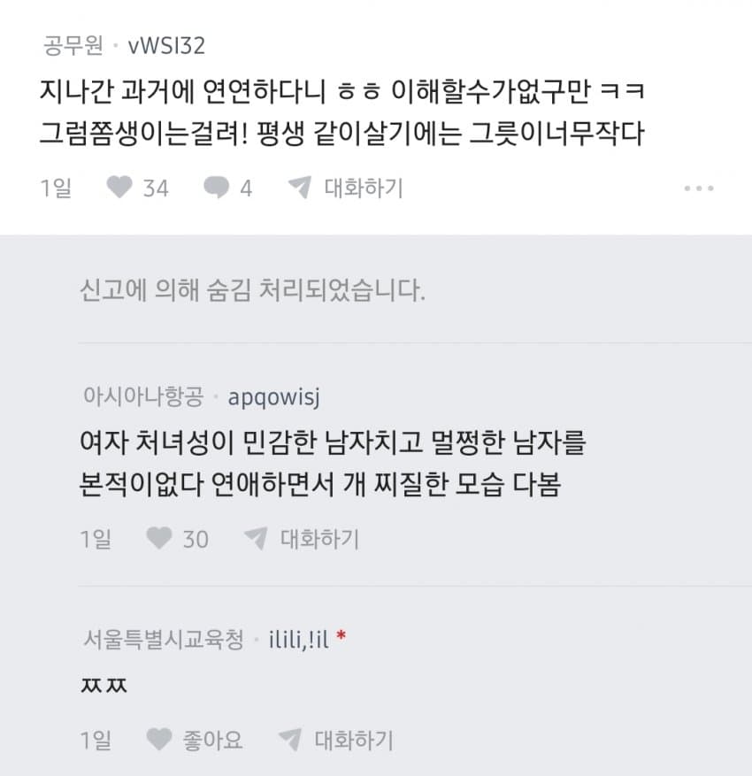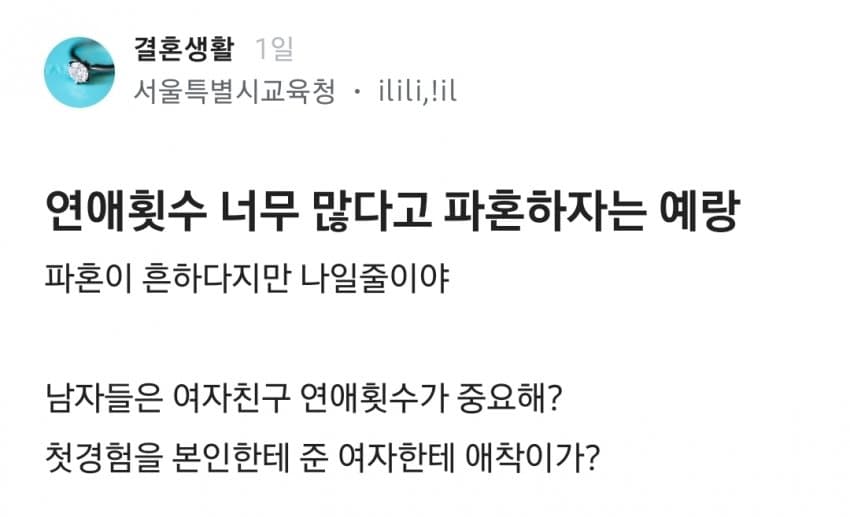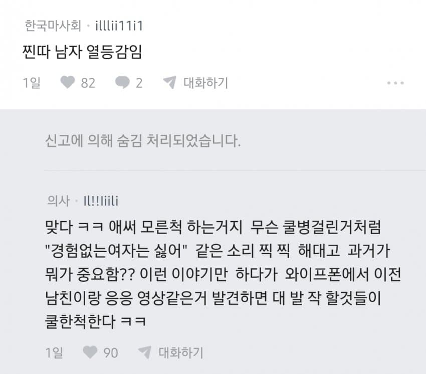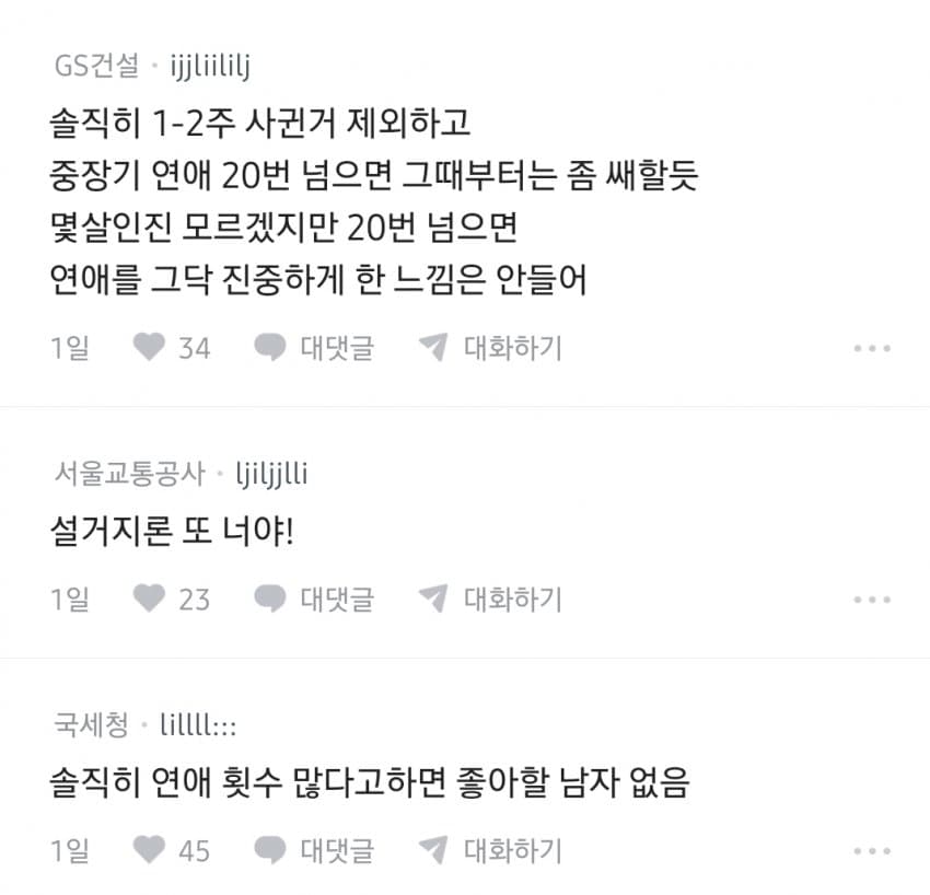 "연애횟수 많아서 거르는 남자는 찐따임 ㅋ"