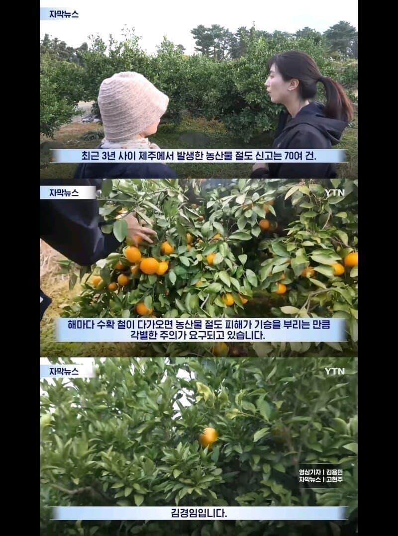 하루만에 제주 감귤 3톤 털어간 도둑
