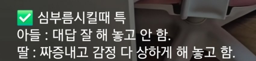 아들다루는법.나중에 이거 정리해놔 = 안함(농담아니라 진짜 잊어먹음)이것좀 정리해줘,도와줘 = 안하는놈은 진짜 손에꼽음