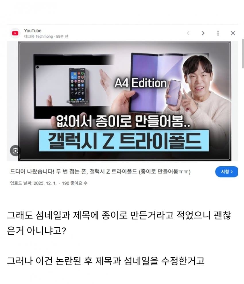어그로가 아니라 걍 화면 방향 지적한 건데 듣보잡 유튜버 하나 가지고 삼성이 갑자기 온커뮤에 글 올리면서 발작하는 거 보니 제대로 지적했나 보네