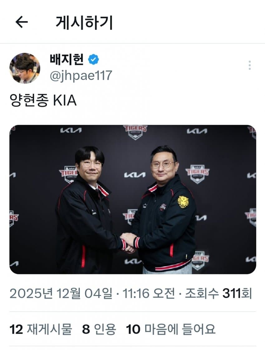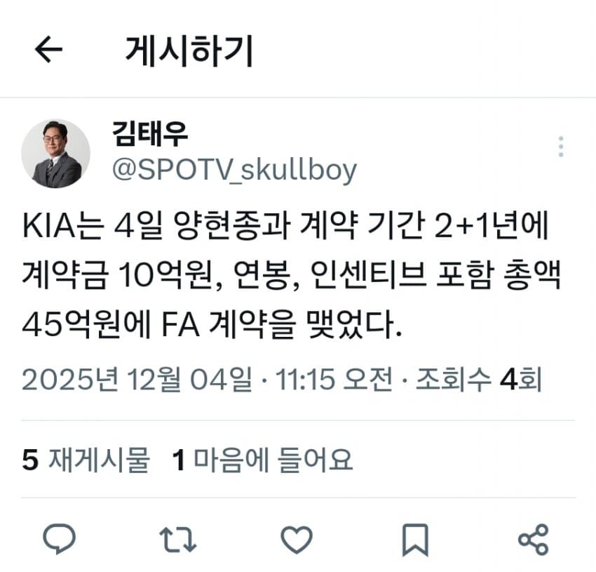와 . 이건 기아가 너무 퍼준거같은데 너무하다올해 성적을 보고도 ..