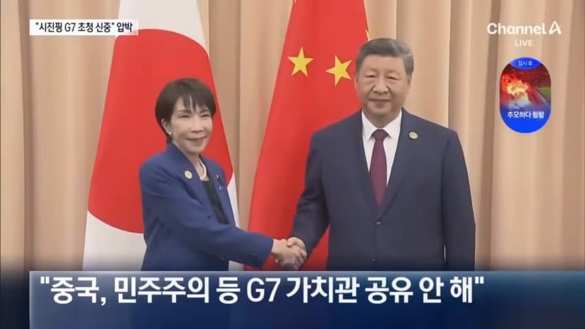일본은 그동안 G7 정상회의에서 중국에 대한 견제 목소리를 내왔는데, 중일 갈등이 격화되는 지금은 '초청장을 건네선 안 된다'는 메시지를 더욱 분명히 했다는 평가가 나옴