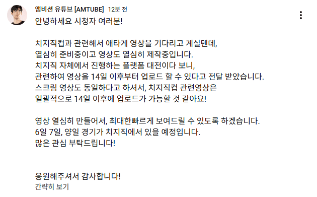 치지직측에서 2일에 통제걸고 14일에 열으라고함(엠비션 유튜브 피셜)