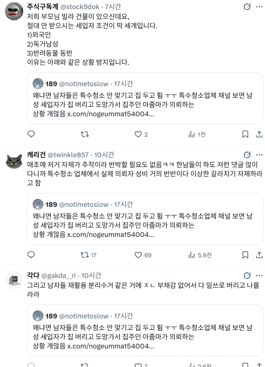 그리고 남자는 현장에 같이 있거나 없더라도 일단 본인이 상황에 개입을 함.근데 여자는 그냥 튀어버려서 집주인들이나 가족이 연락오고 현장에 오거나 통화함.현장에서 얼굴 본 여자는 캣맘아주머니 딱 한명있었음