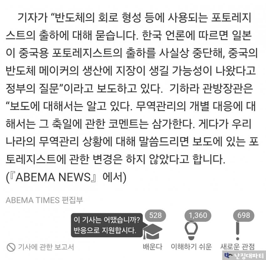 한국 민관이 협력하여 생각보다 빠르게 소부장 독립에 성과를 보이자 당황했고
