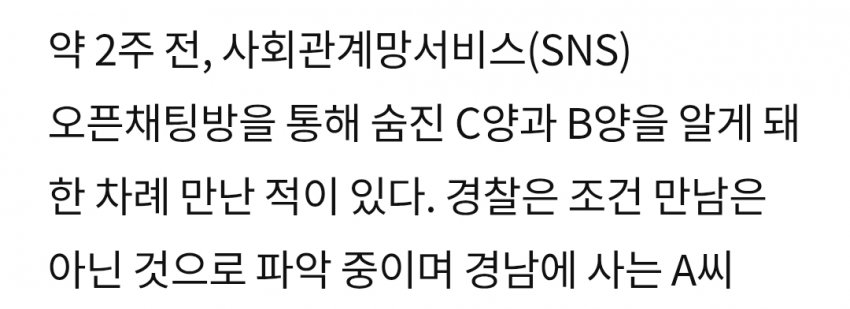 저건 살아남은 사람의 일방적인 진술이고 20대남이랑 모텔에서 만날 이유가없고 조건만남이 아니라면 근처에 우연히 남자중학생2명이 그것도 모텔을 잘안다는듯이 모텔뒷문으로 들어갈수가있겠냐?