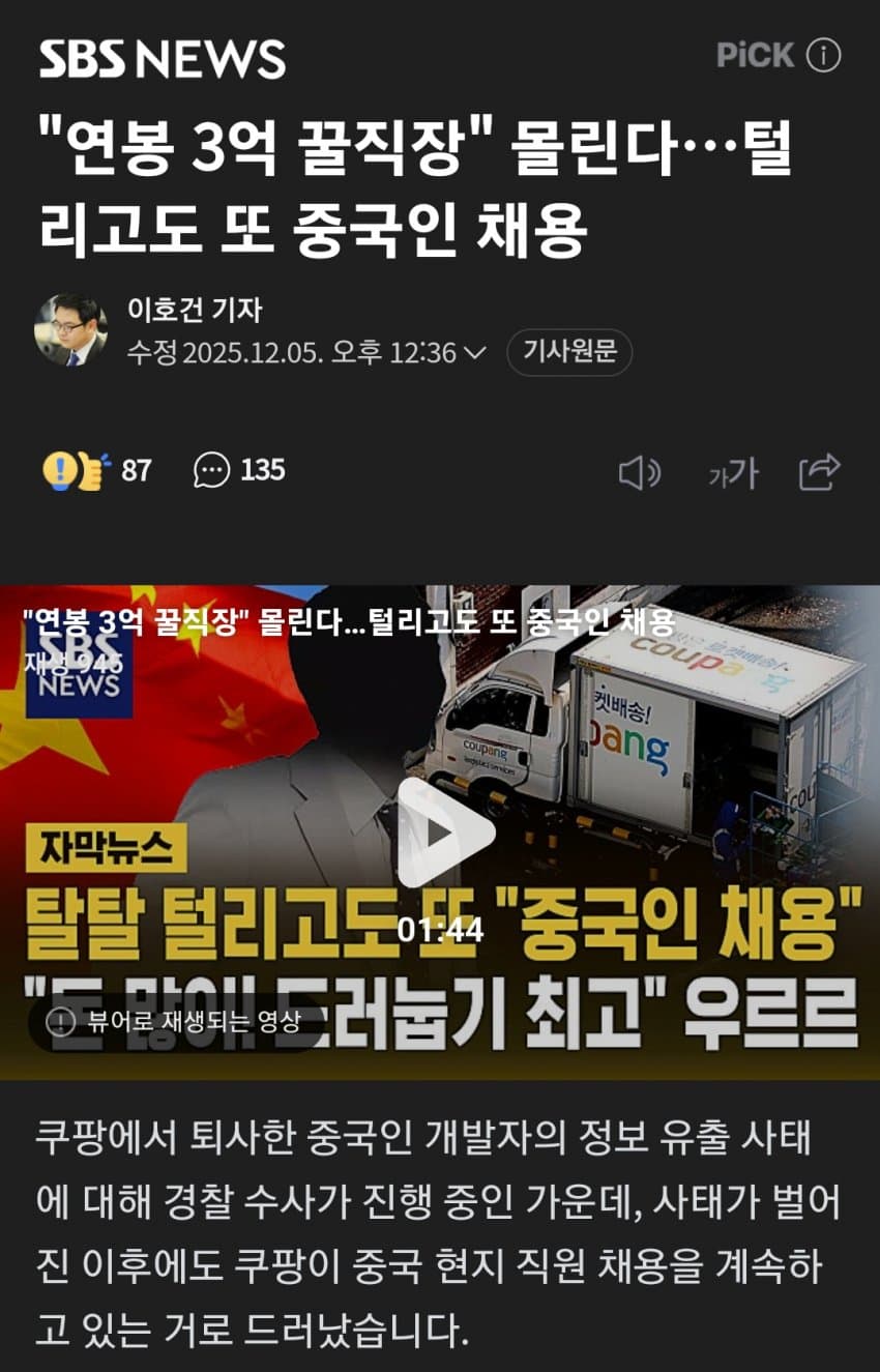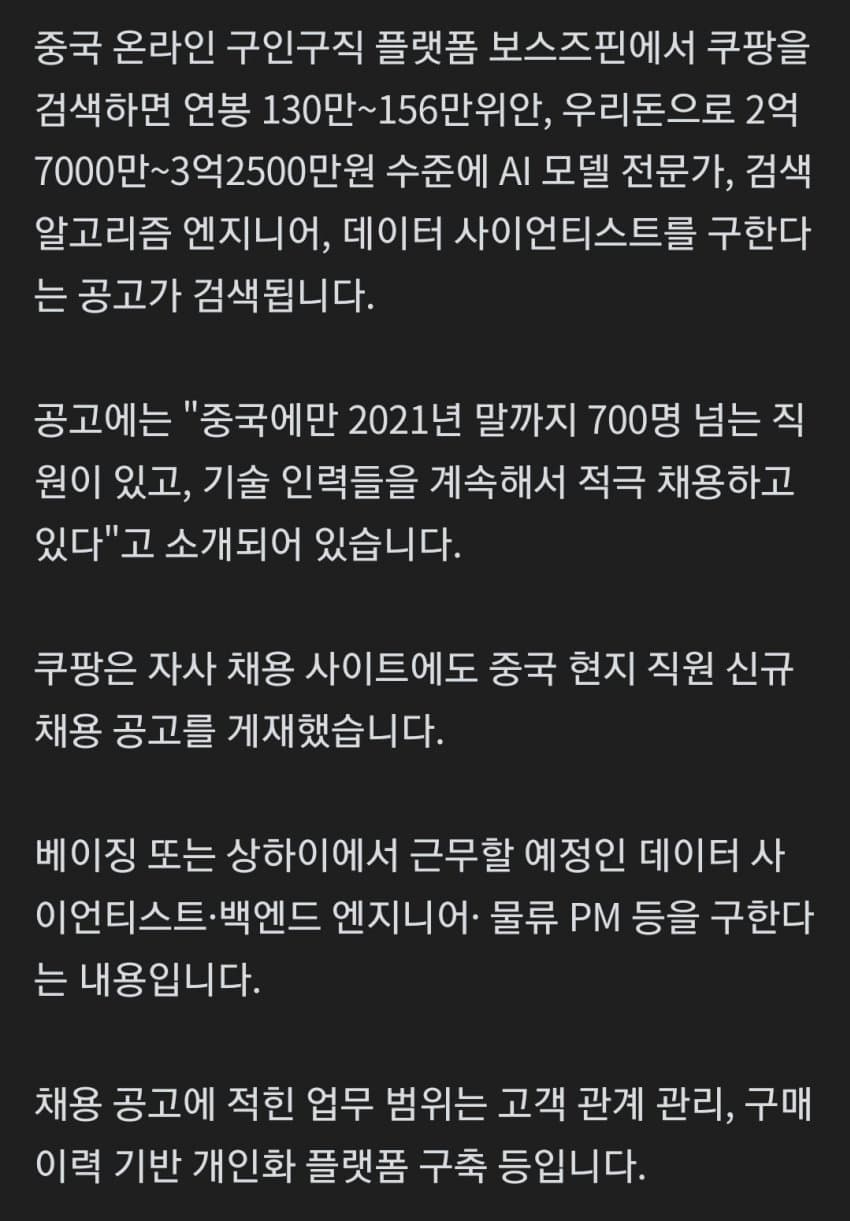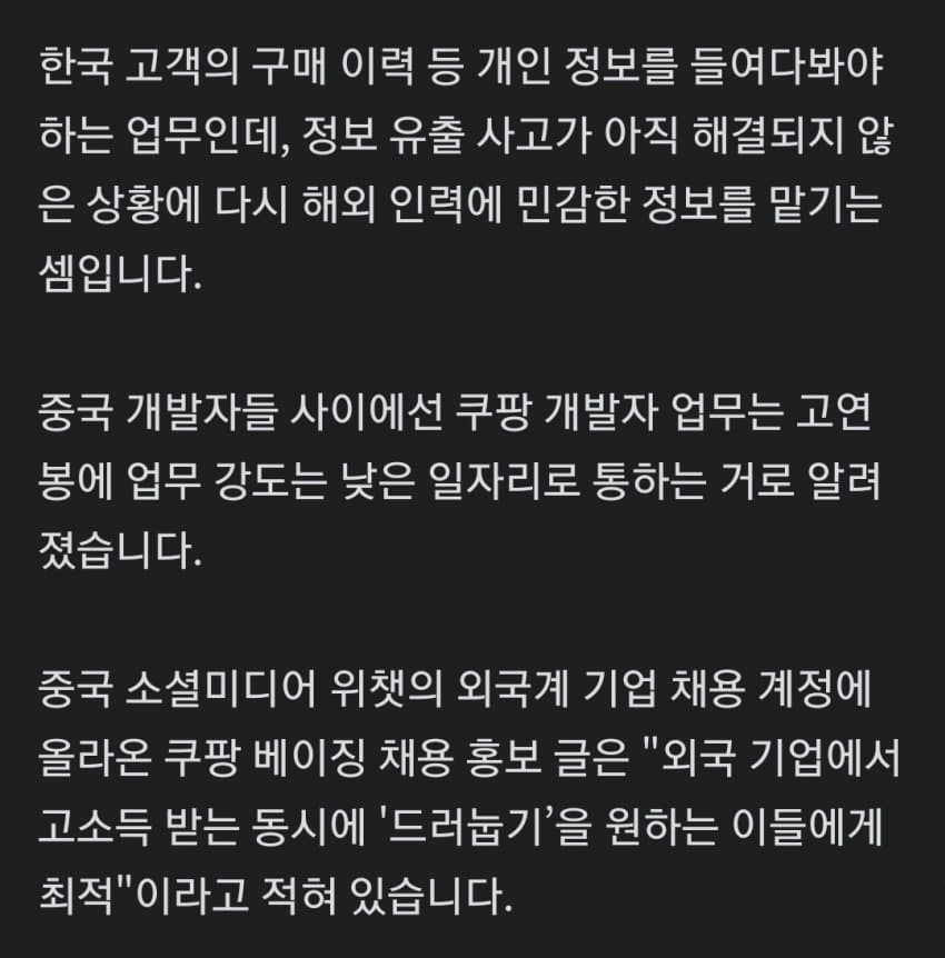 쿠팡은 딸배만 한국인 굴리고 고연봉 일자리는 자꾸 외국인, 외국에 주려고 하나겉멋만 들어서 임원들도 검머외들 앉히고..외국 지사도 걍 한국인 직원 순환 파견하고 해라