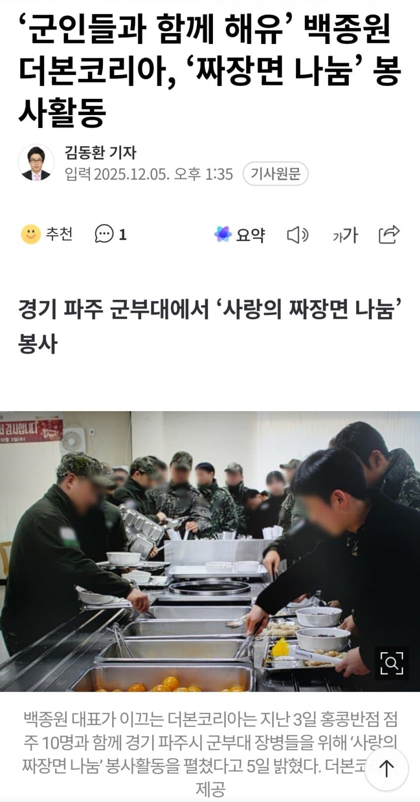 좋은 의도로 국군장병에게 나눔하는 봉사활동 하시는데 너무 억까가 심하다
