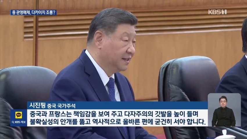 대통령을 국빈 초청한 프랑스를 상대로, 일본의 타이완 관련 발언에 대한 중국의 입장을 지지해 줄 것을 촉구했음