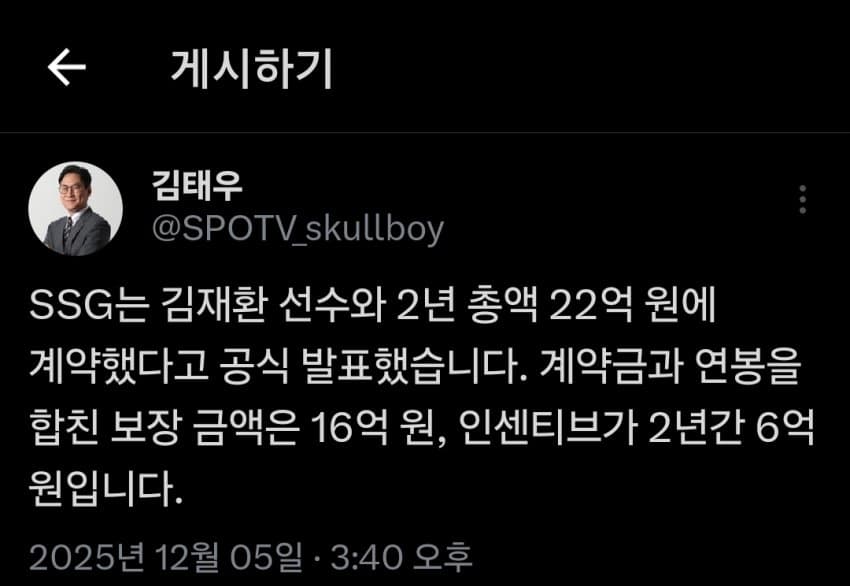16억도 비싼감은 있는데폼떨어진 이재원 5툴X 그냥 다 못하는 오태곤 계약할때 처럼 난 별로인듯
