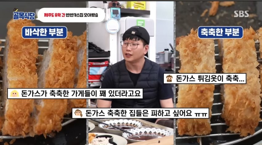 진지빨자면 연돈사장 말이 틀린건 아님 ㅇㅇ 걍 빠짝 튀겨버리면 축축해지지않음 육즙 살리려고 살짝 튀겼을때 나타나는 어쩔수없는 현상임 양자택일해야지