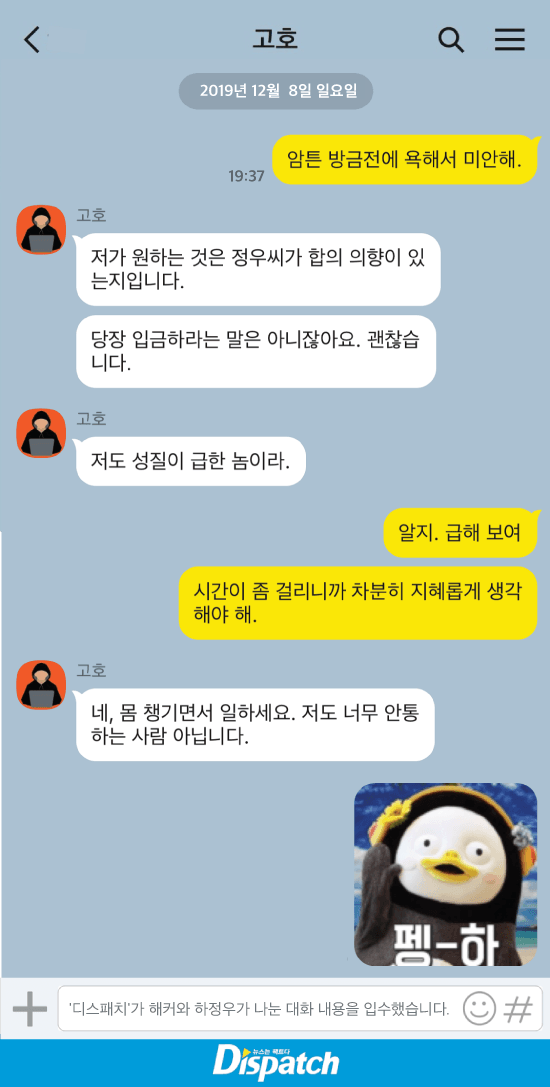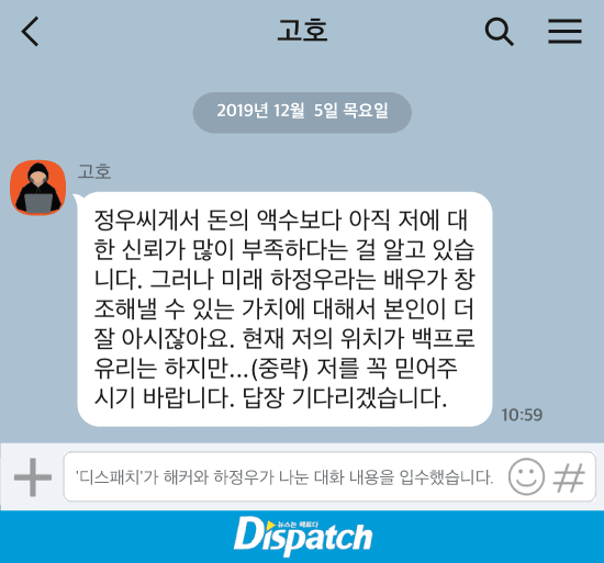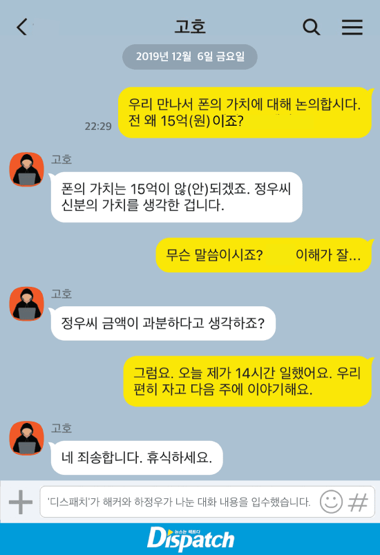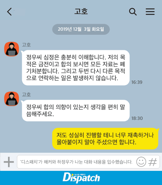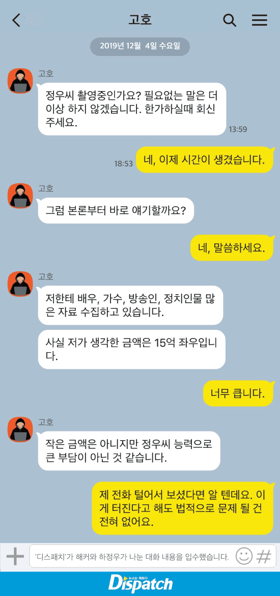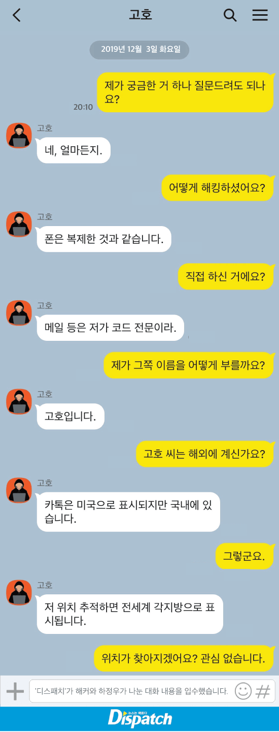 내 생각엔 해킹범 쟤도 즐겼어 하정우랑 카톡 얼마나 재밌어