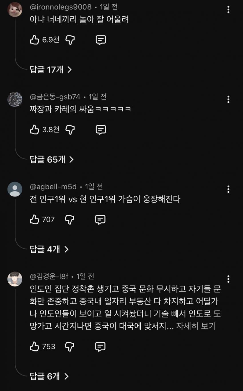 인구 1위끼리 웅장하네. 그런 와중에 초 엘리트는 미국으로 가는거지? 인도나 중국이나