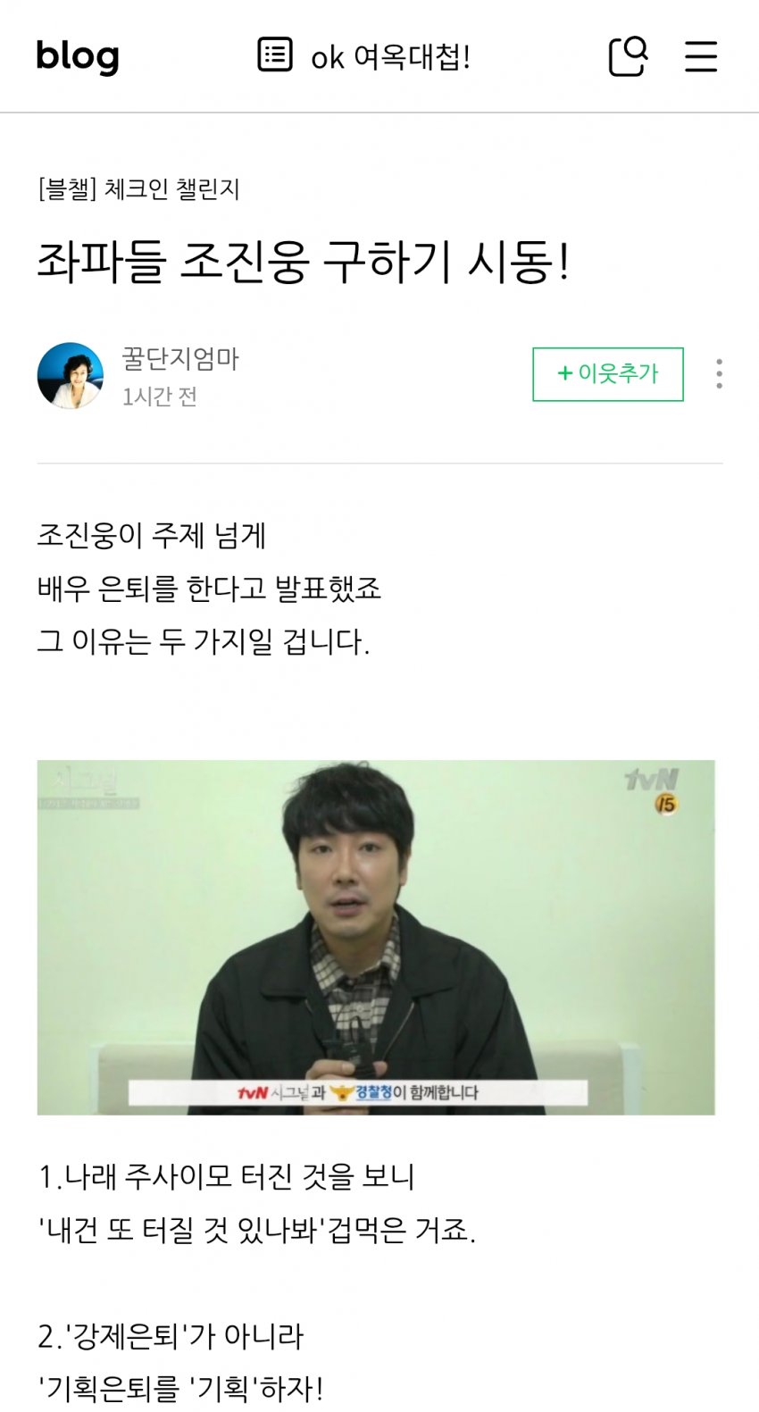 지금 조진웅 위험한 상황임. 조진웅이 뒤지면 제일 이득보는 애들이 누구겠냐. 조진웅 지금 재난영화찍는것처럼 긴박한 상황일거다
