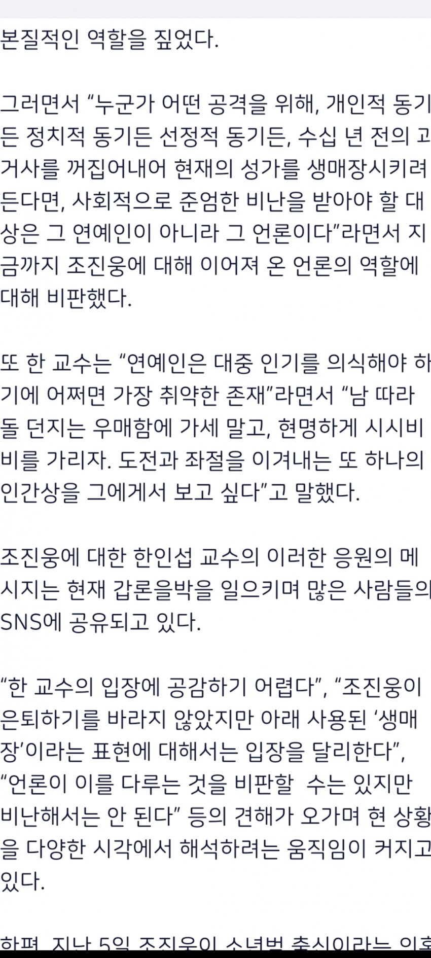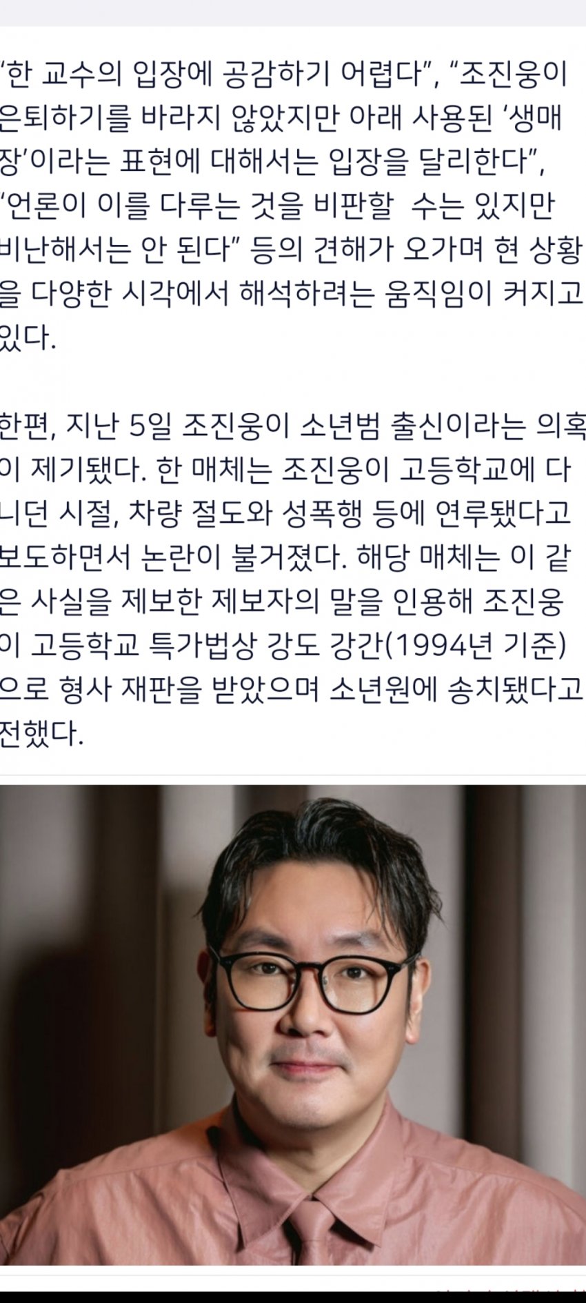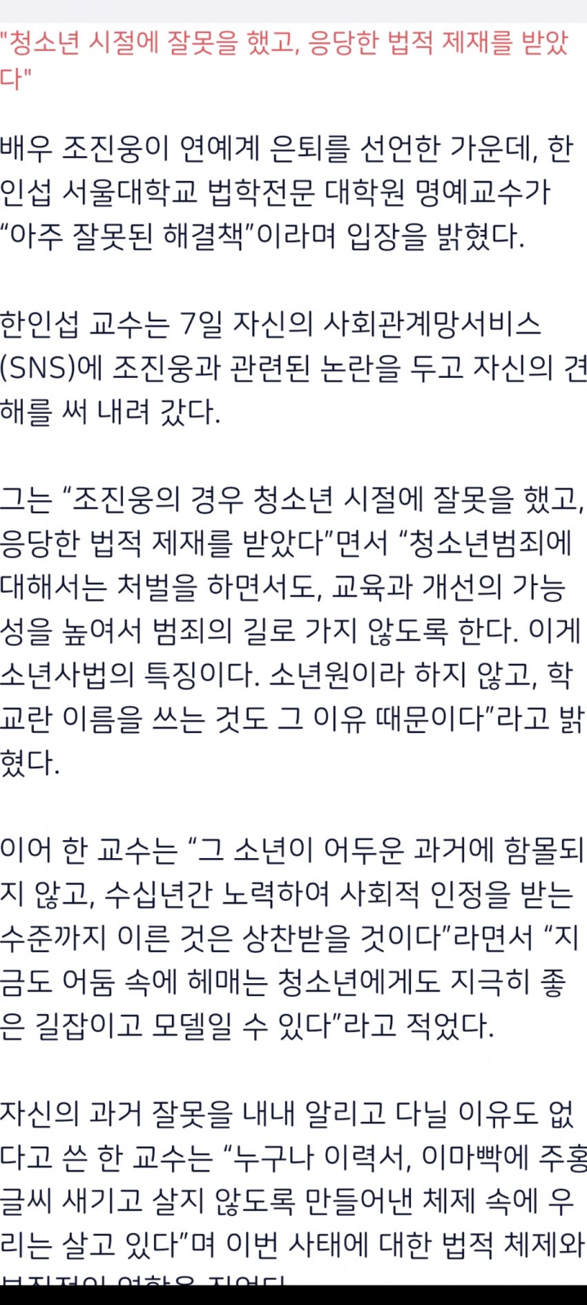 실질적으론 진심이 담긴 옹호가아님 복귀발판 여지를 심어주기위한늬앙스가 묻어나는 성범죄자 전과가잇는 소년범 고정관념 없애주기 보단 복귀의 기회를 삼으려는 노골적 가증스러움이다