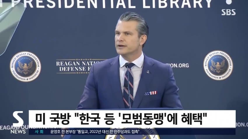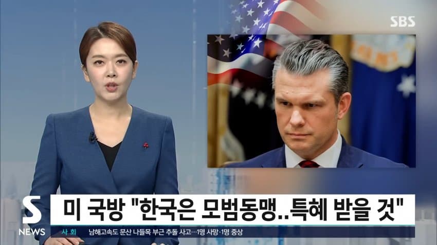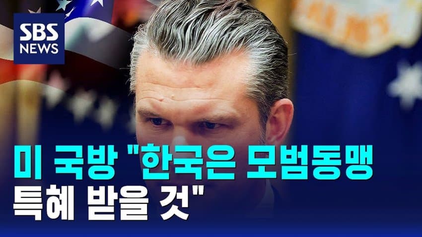 피트 헤그세스 미 국방부 장관이 한국을 모범 동맹이라고 칭하며 특혜를 받을 것이라고 언급함