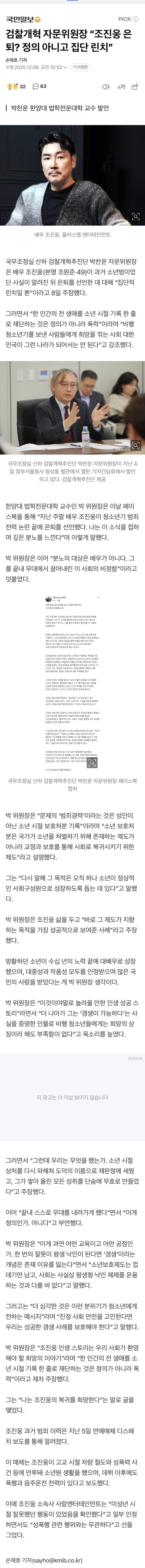 조진웅이랑 같이 재판 받은 공범이 넘겼다는 썰이 돌던데 더 터지면 진짜 감당 못하고 수습은 커녕 매장당하게 생겨빨리 은퇴로 사건 종결 시킬려 했더만 어디 알지도 못 하는 것들이 계속 들쑤시고 있어서 조진웅 미치고 팔짝 뛸 듯