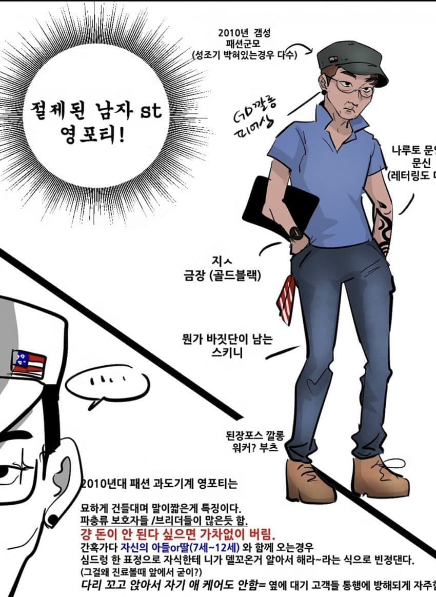 만화적 근들갑 과장이 좀 심해서 ㅁㅈㅎ 그린놈도 영포티같음