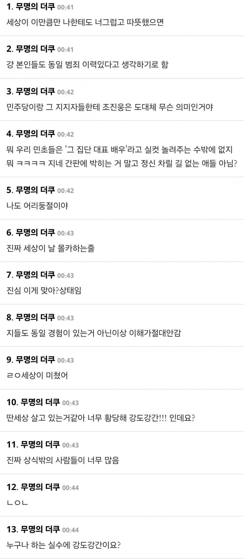 어차피 눈 앞에서 ㅂㅈ를 찢어도 선거날엔 민주당 찍을 거면서 뭔 새삼스레 충격받은 척임?