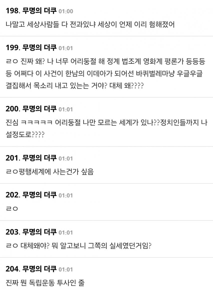 정치묻는게 참 어지러워짐. 그냥 정치가 묻는순간 1+1=2가 아니라 3이라고 주장하는 사람이 반이 생겨버림ㅋㅋ 좌우상관없이 둘다
