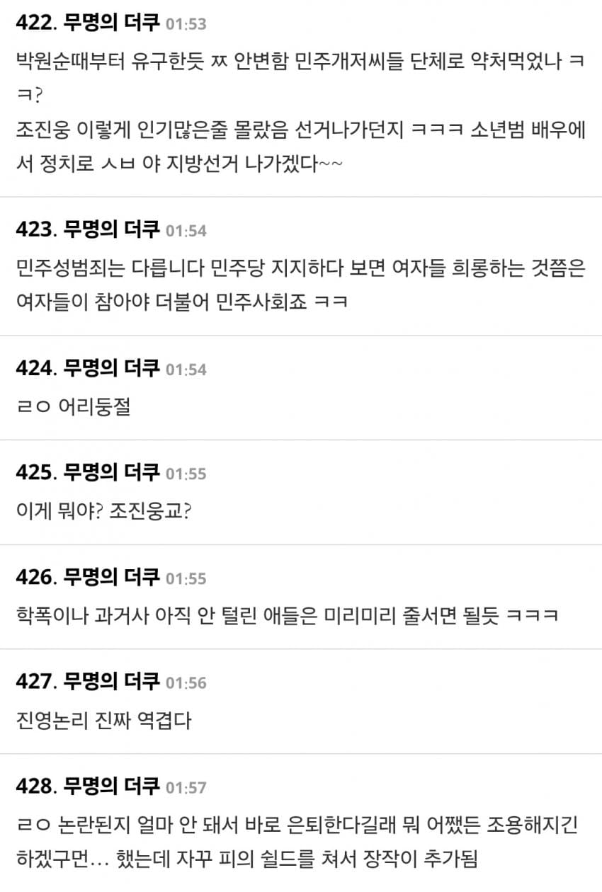 그와중에 교묘하게 민주당 말고 남자 << 여기로 화살 돌리는 애들 보이네ㅋㄱㅋㅋ