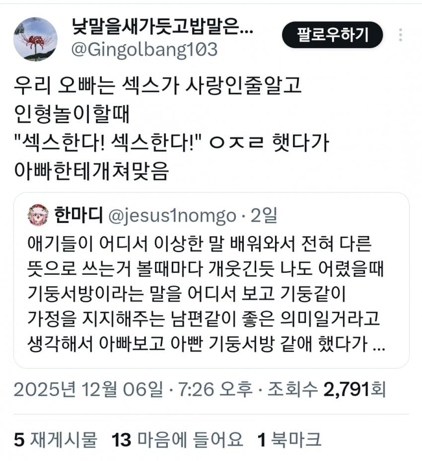 아빤 기둥서방 같아