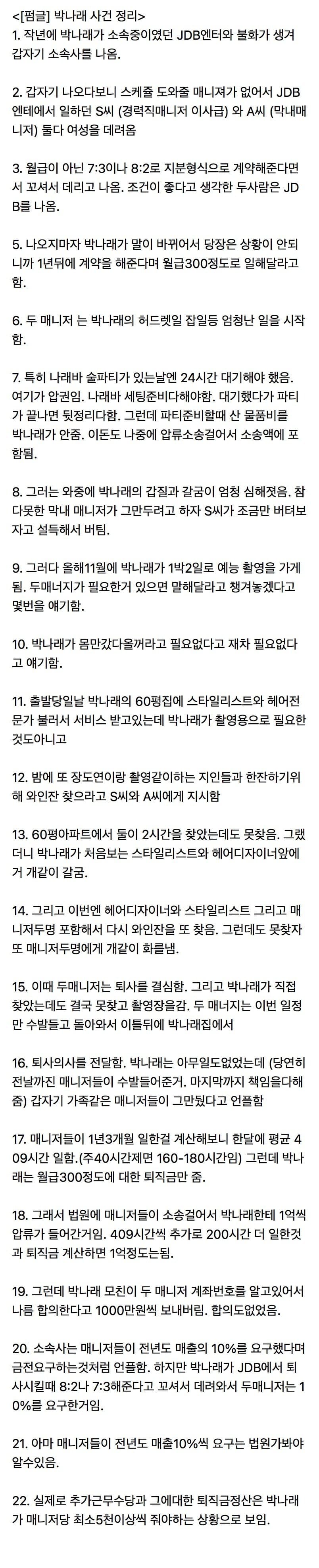아니 난 개인 심부름 시키는 건 그럴 수도 있다고 보는데 그럼 돈을 잘 쳐줘야지 박나래가 돈이 없는 애도 아니고