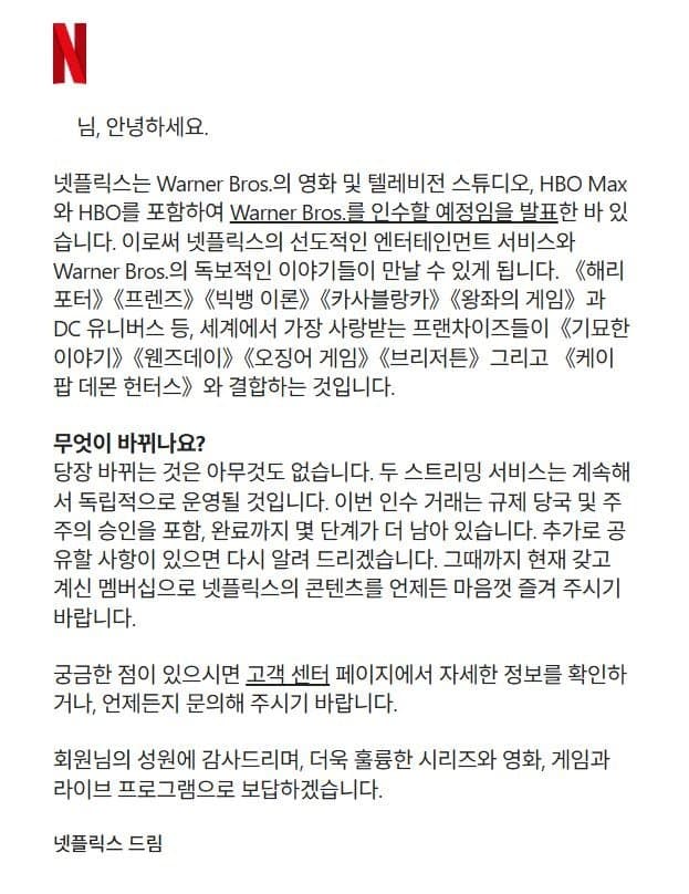 곧 워너브라더스 컨텐츠를 넷플릭스에서