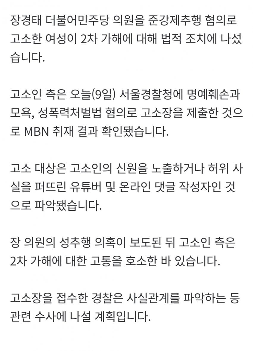 단독] '성추행 의혹' 장경태 의원 고소인, 2차 가해 관련고소장제출
