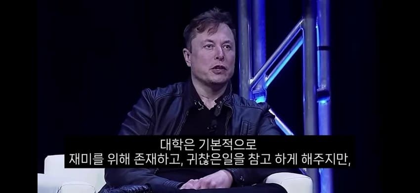 근데 저건 머스크같은 천재한테 해당되는 말임평범한 사람들은 대학같은 환경에 가야지 학습을 함 스스로 찾아서 학습하기 쉽지 않음