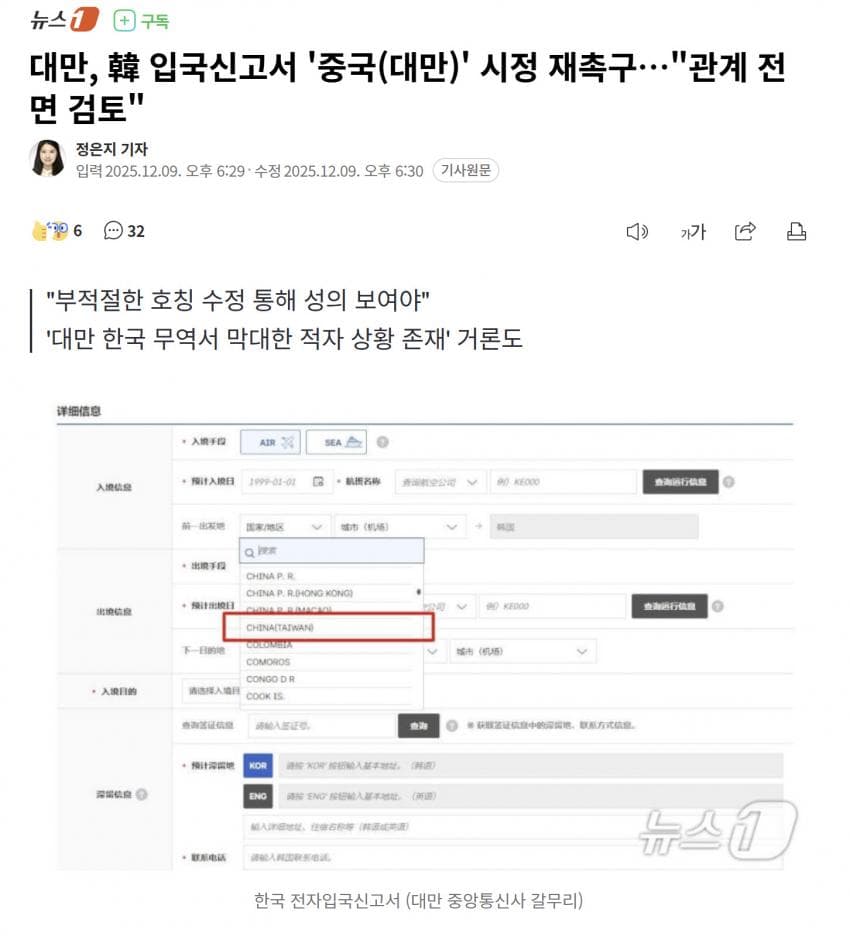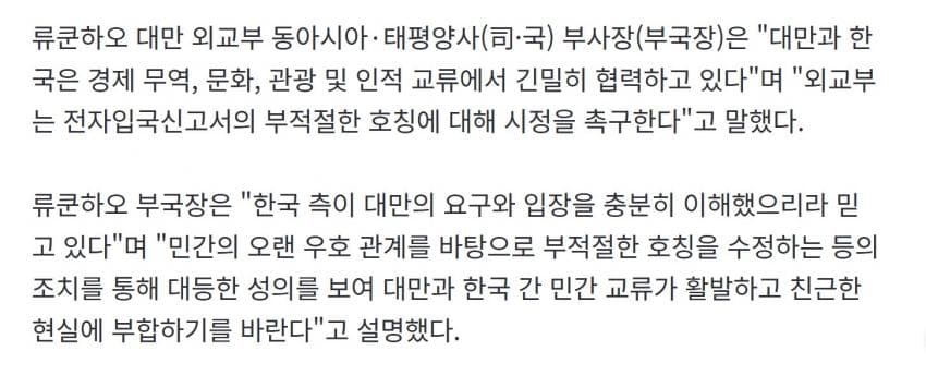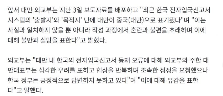 팩트체크) 대만은 국제법상 미승인국이라 대한민국과 정식 외교관계가 없기에 요구를 응해줄 이유도, 의무도 없으며 미국, 일본을 포함한 대다수의 나라는 하나의 중국 원칙을 포기하지 않았다