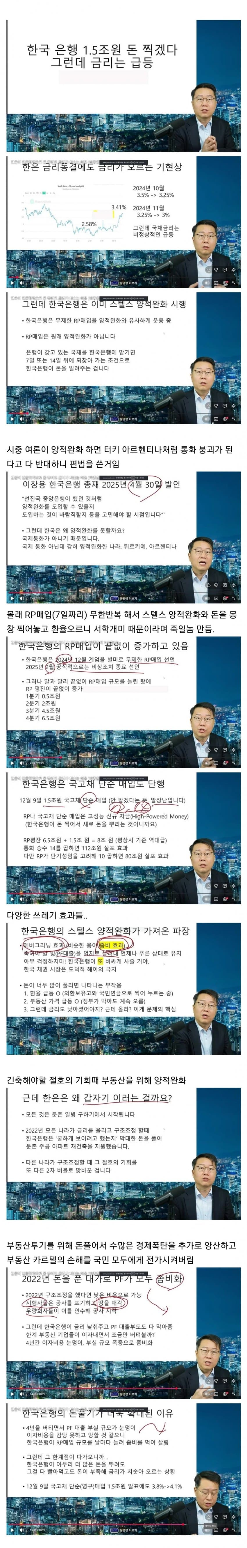 문재앙이 잘한 거의 몇 안되는 것중 하나가 이창용 센세를 한은 총재에 앉힌거임. 스텔스 양적완화라는 묘수를 보고 부랄을 탁 칠뻔함. 진짜 저사람은 한국이 갖기에 과분한 천재가 맞다. 박종훈이도 사실 조회수 때문에 일부러 말 안한 부분이 있어서 논란처럼 보이는거지 전체 맥락을 보면 창용이햄이 묘수를 뒀다는걸 이해할거임