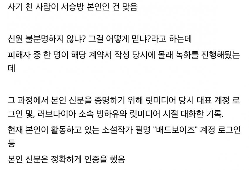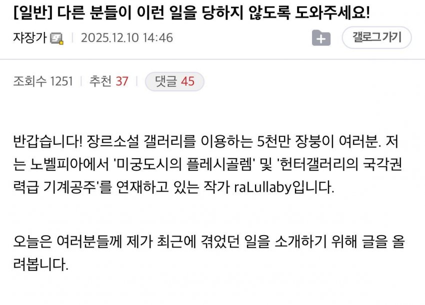 와~ 이게 진짜라면?소설에 써먹기 좋은 소재로세.좀더 각색을 해서 천하악인으로 만들 여지도 있음.이른바, 소설 속 빌런은 사실 커리어도 말짱 사기였던 것이다!글 실력은 있는데 현실 모르는 하꼬 작가 몇몇을 살살 꼬드겨 키워준다며 대필 작가 시킨 후 자기 커리어로 둔갑!물론 이건 뇌내망상 속 소설 빌런 설정임