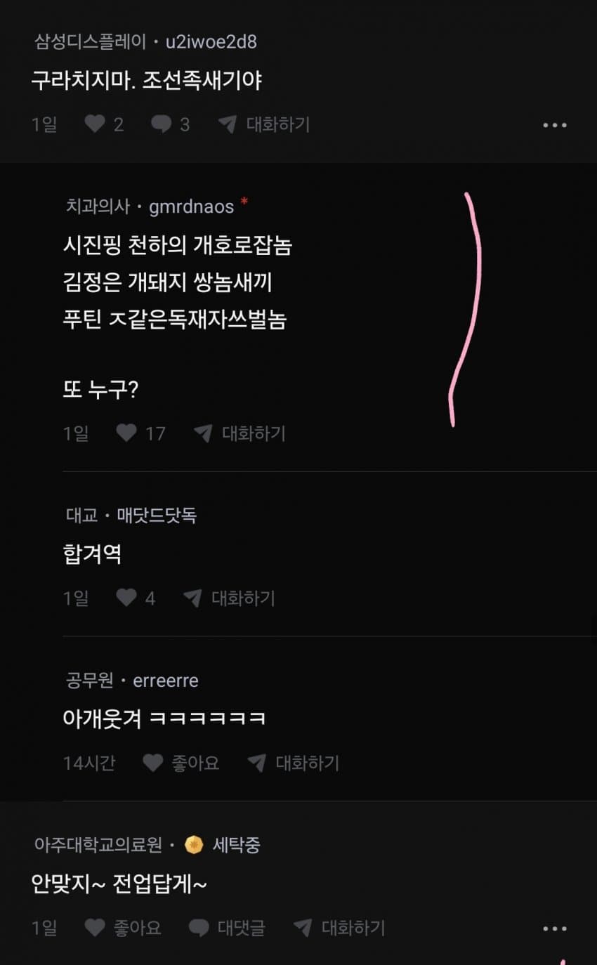 아 화짱조 갈라치긴가?