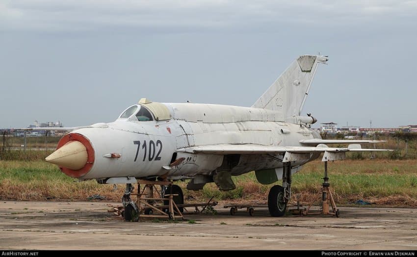 뽀쪤똥(Pochentong Airport) 공항에 전시물로 주기되어있던 MIG-21bis에 눈을 돌림 (7102호)