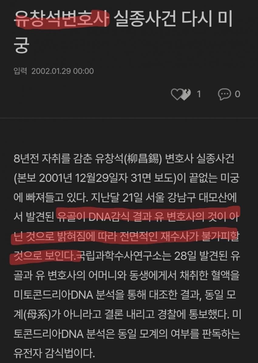 DNA 감식 결과 변호사와 일치하지 않아서