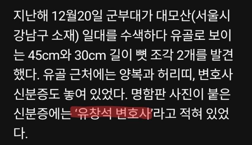 실종된 변호사 신분증이 발견되어