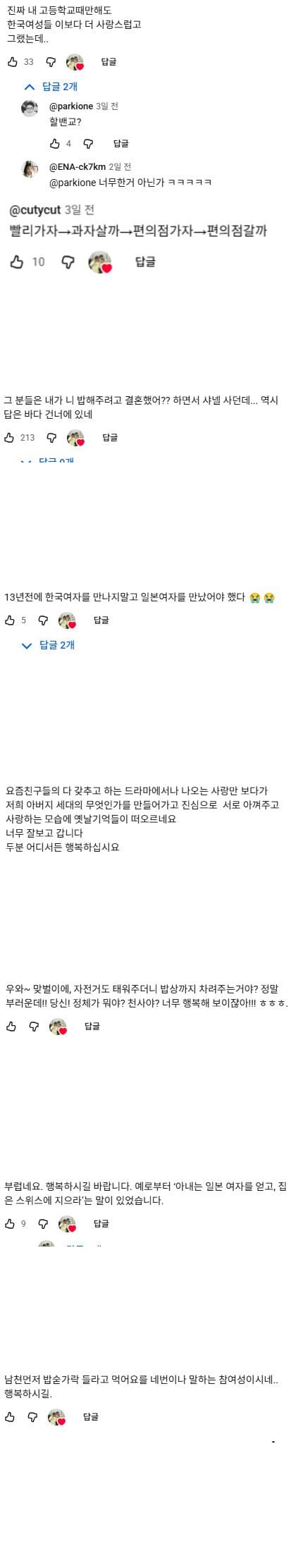 심형탁 봐라. 결국 일본여자랑 결혼해서 너무 행복하게 살잖아. 와이프가 일본여성분이라 성격도좋고 이쁘니까 애도 본받아서 2세도 혼혈이라 엄청 이뻐서 애도 잘안울고 그래서 광고도 들어온다더라 ..ㄷㄷ
