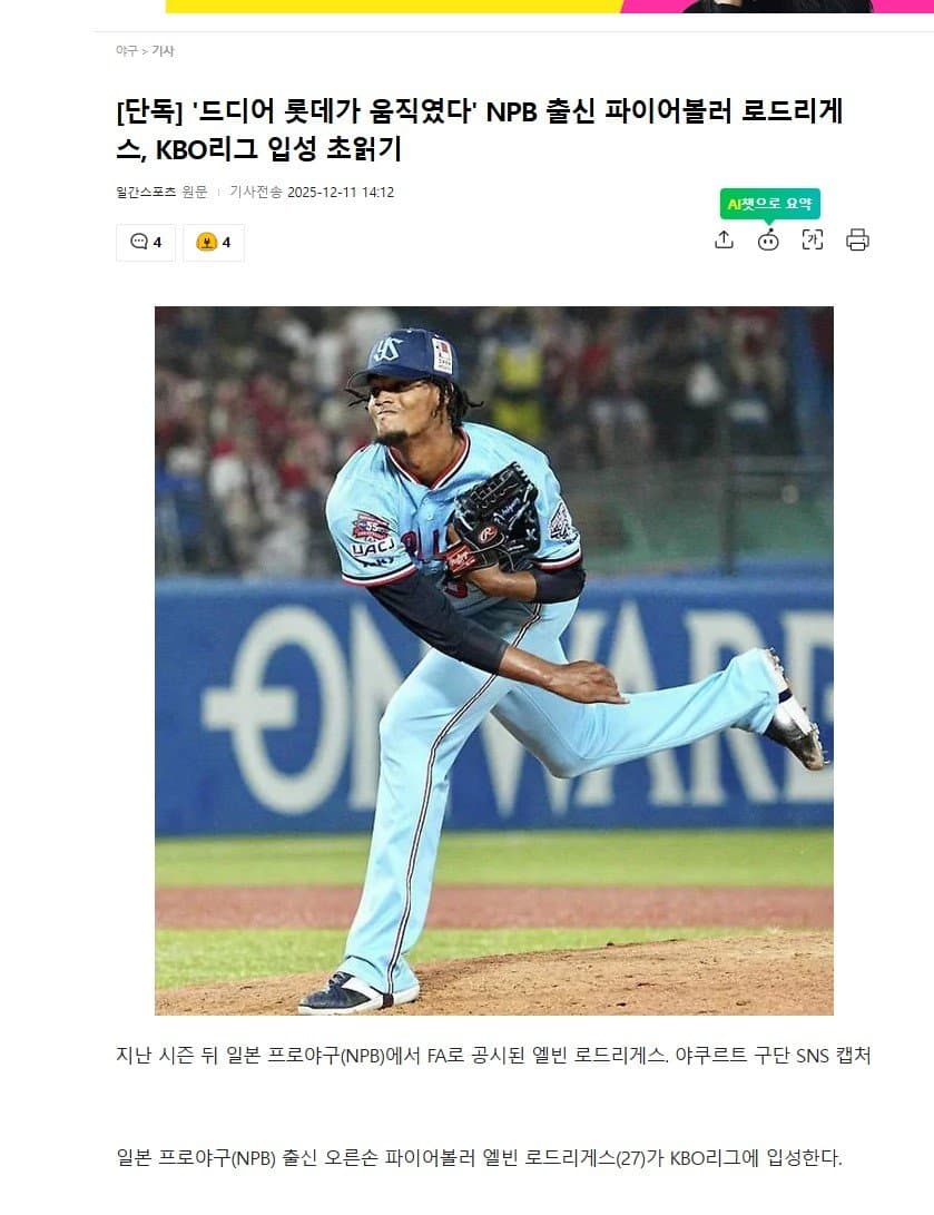와 임마 어떻게 데려왔지 NPB 있을때 실력이랑 인성도 좋아서 일본애들한테도 사랑받았는데